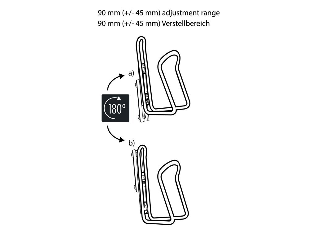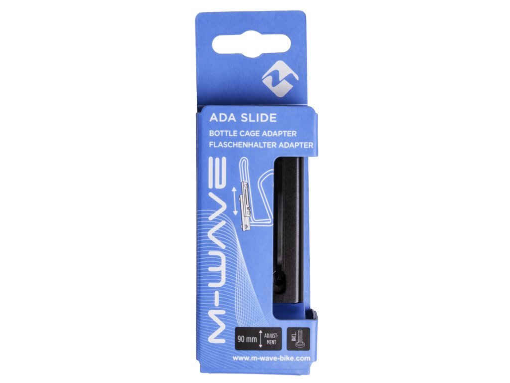 Posuvný adaptér pro montáž košíku na rám Posunutí o 90 mm (+/- 45 mm na každou stranu)Materiál: Al Balení: originální karta M-Wave