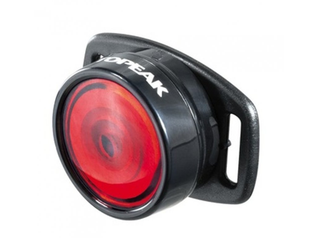 Miniaturní zadní osvětlení s 0,5 W červenou LED. Možnost připevnění na helmu, nosič Topeak nebo brašnu s poutkem.