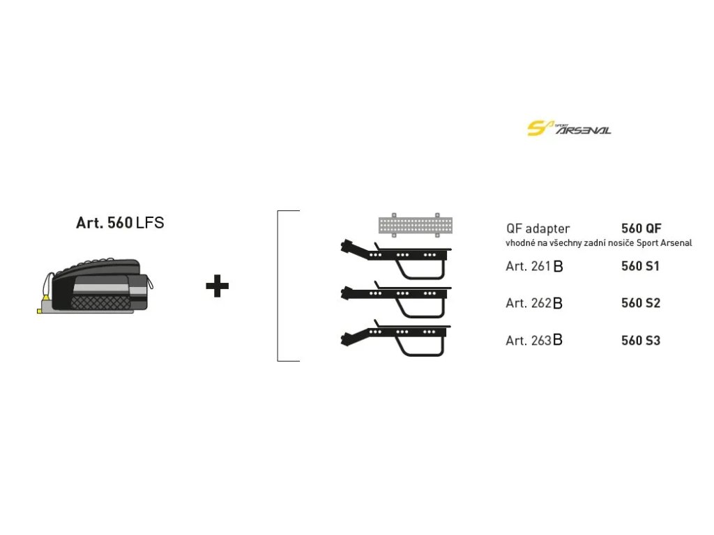 Na klasické zadní nosiče Sport Arsenal nebo přední nosič art.203 Sport Arsenal lze tuto brašnu použít po přidání adaptéru Art.185 QF . Originální QuickFix systém přináší jednoduché, rychlé a spolehlivé uchycení brašny k nosiči.