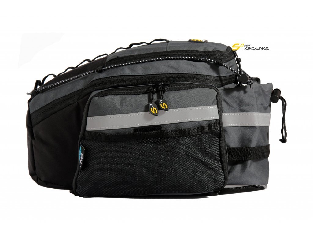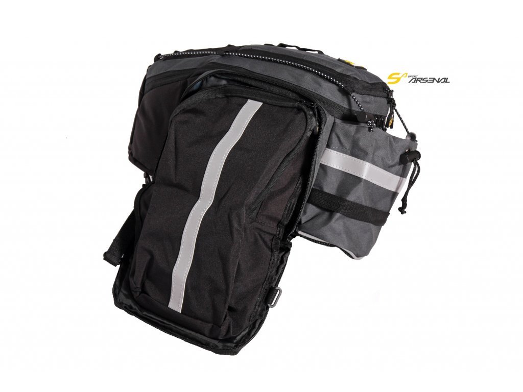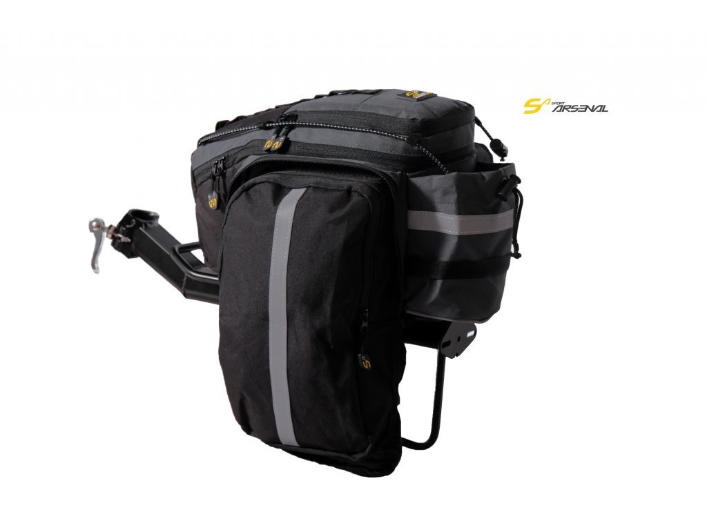 Universální brašna na zadní nosič kterou uplatníte na menší výlety, na cestu do práce, nebo pro rybáře juniora. Zásadní výhodou brašny je její členění a variabilita objemu. Ze středně velké brašny můžete mít po rozevření bočních kapes brašnu o objemu až 20 litrů.