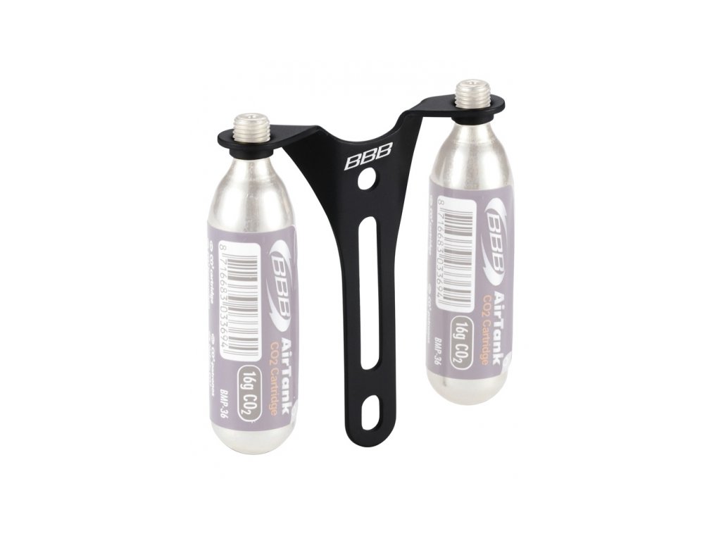 Vyrobeno z Alu 6061. Držák s úchyty pro 2 CO2 náplně. Možno upevnit pod košík. Náplně uloženy bezpečně a na dosah. Hmotnost: 11 gramů.