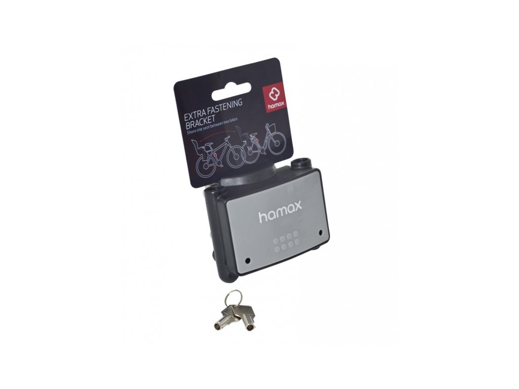 Náhradní upínací zámek k cyklosedačkám Hamax Kiss, Smiley, Sleepy a Siesta s možností uzamknutí sedačky v zámku. Pro montáž na druhé jízdní kolo a snadné používání sedačky na obou kolech. Doporučeno pro montáž na jízdní kola s přůměrem trubky rámu 28 - 40 mm.