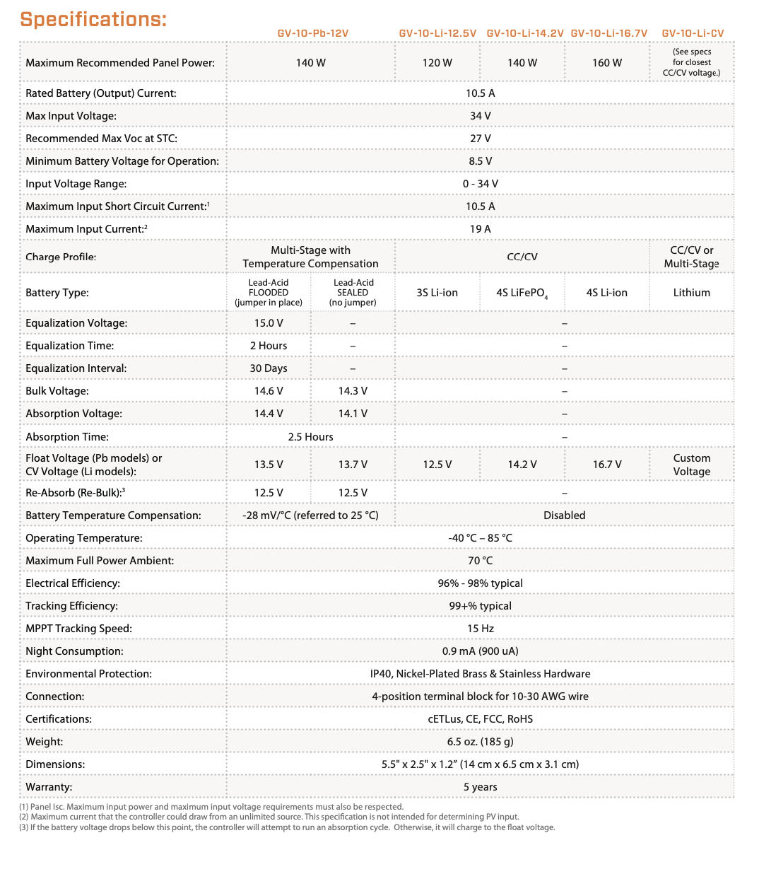 Genasun GV-10 Lithium 14.2 Volt MPPT