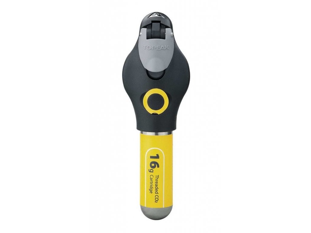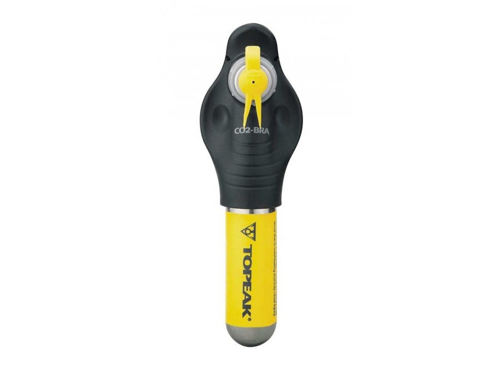 Plastová mikropumpička na CO2 bombičky s jednoduchým systémem uchycení. Páčka pro přesné nastavení tlaku. Indikátor správného založení bombičky a blížícího se vyprázdnění. Bezpečnostní prstenec zabraňuje náhodnému proražení bombičky během přepravy.