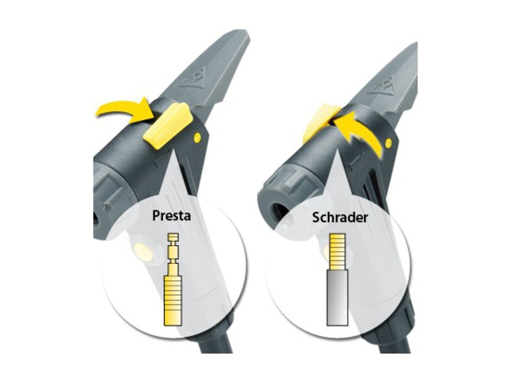 SmartHead™ s tlačítkem pro upouštění umožňuje precizní nastavení tlaku. Stabilní trojnohá základna s ocelovým tělem pro snadné huštění až do 200 psi / 14 bar. Skvěle čitelný manometr pro jednoduché dosažení požadovaného tlaku. Extra dlouhá 120 cm hadička pro snadné připojení k přednímu i zadnímu kolu i pokud je kolo umístěno ve stojanu.