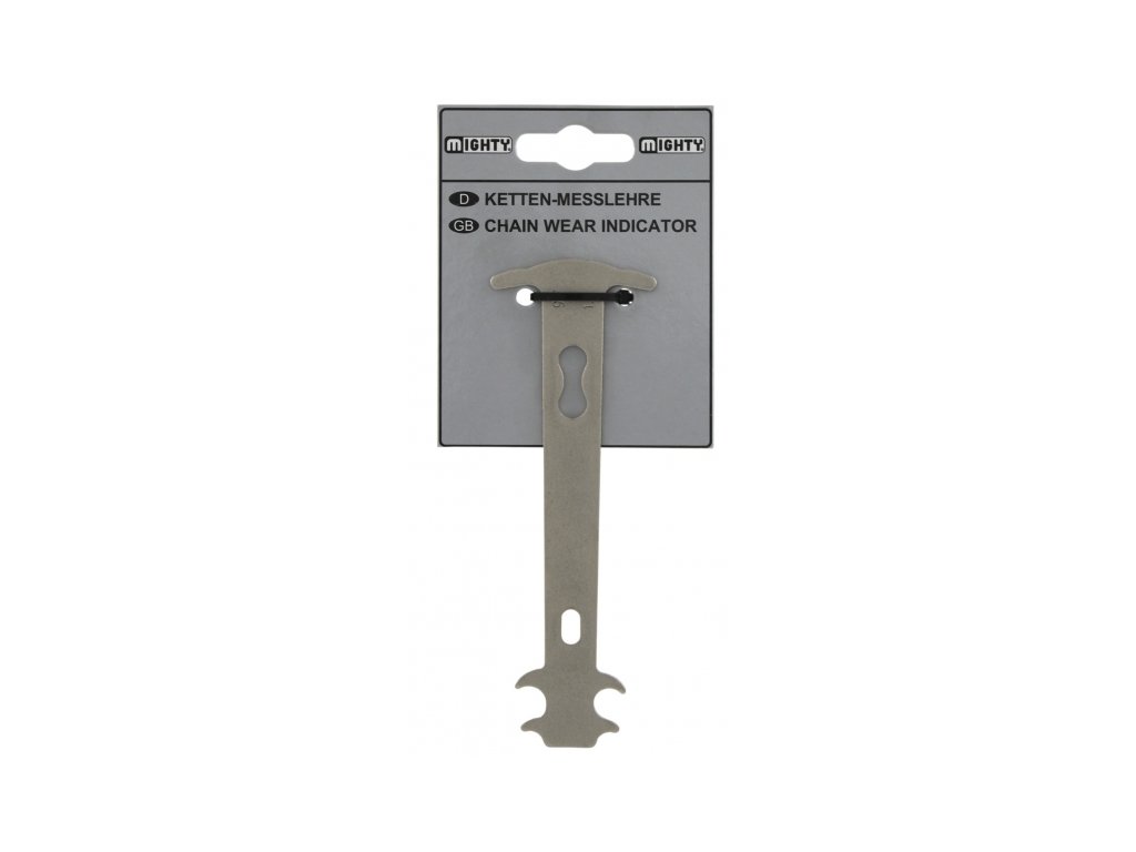 Opotřebený řetěz ztrácí svůj původní výkon a způsobuje rychlejší opotřebení pastorků a převodníků. Proto je třeba jej pomocí měrky / kalibru přeměřovat.
