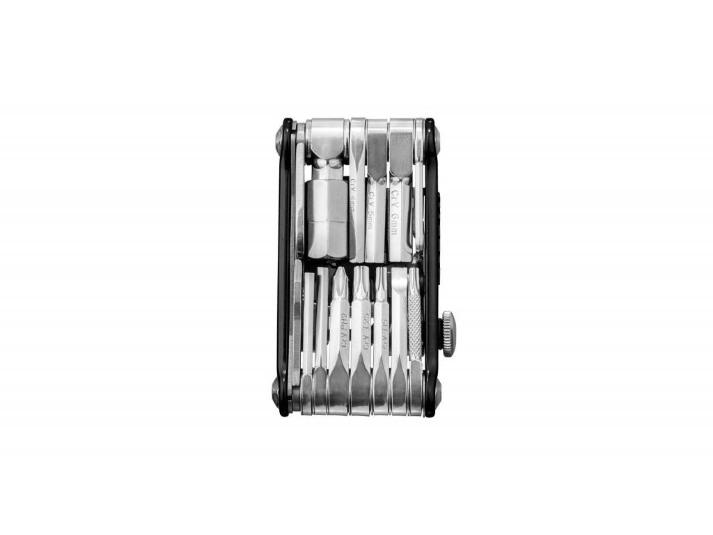 Vysoce kvalitní a přesné mini nářadí s 30 funkcemi a integrovaným nářadím pro opravu bezdušových kol, to vše v elegantním těle z kovaného hliníku. Integrovaná nýtovačka řetězu s vestavěným nástrojem master link. Ideální multifunkční nářadí pro jakoukoli vyjížďku.