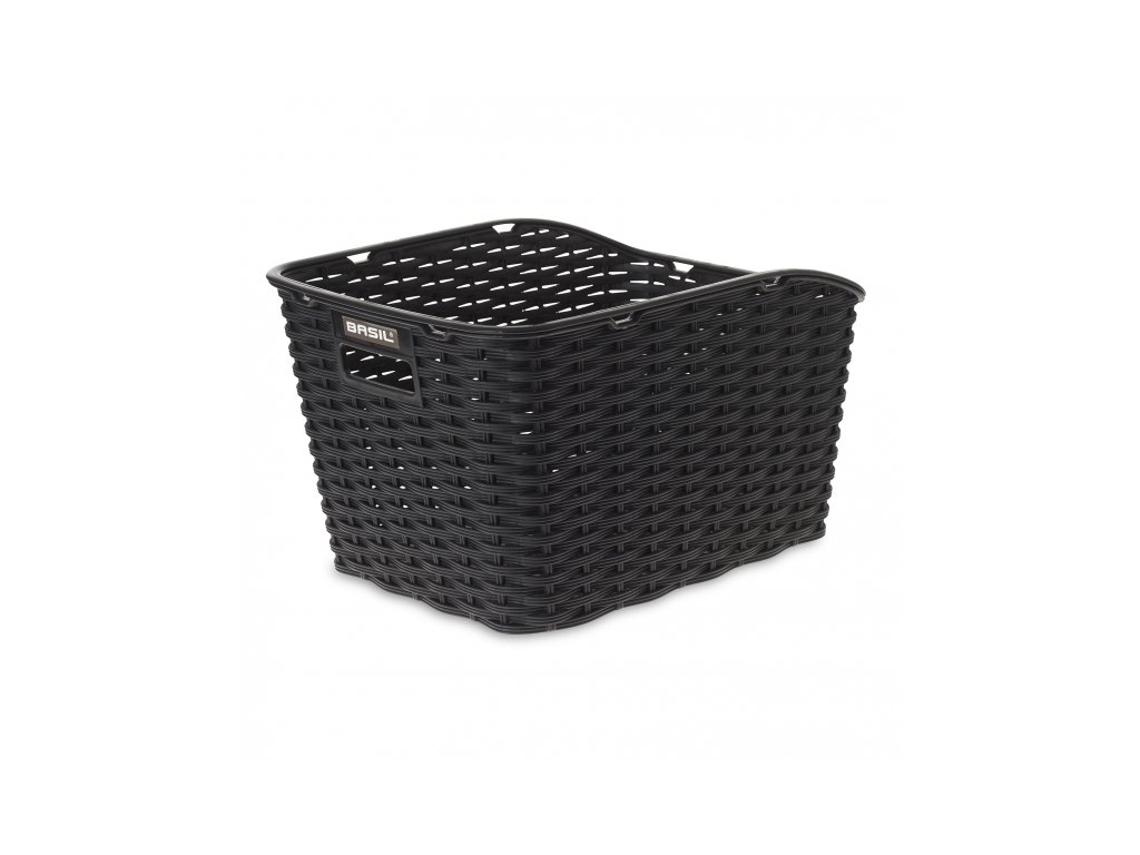 Koš na nosič BASIL ze syntetického voděodolného materiálu. se šikminou v přední části.