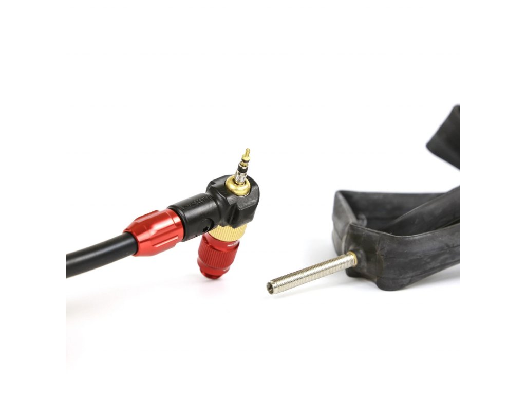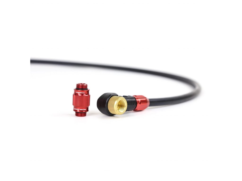 Pumpa je dodávána s extra dlouhou opletenou hadicí vyztuženou nylonem s hliníkovými spojkami. Na konci hadice je špičkové sklíčidlo ABS1 Pro.