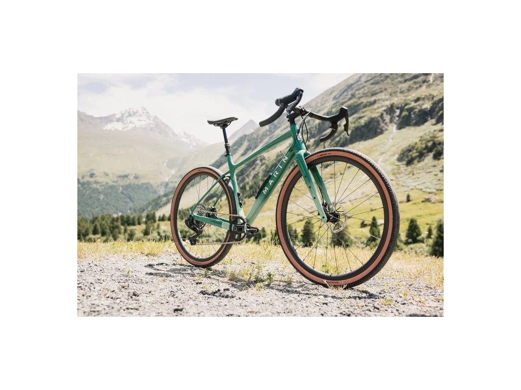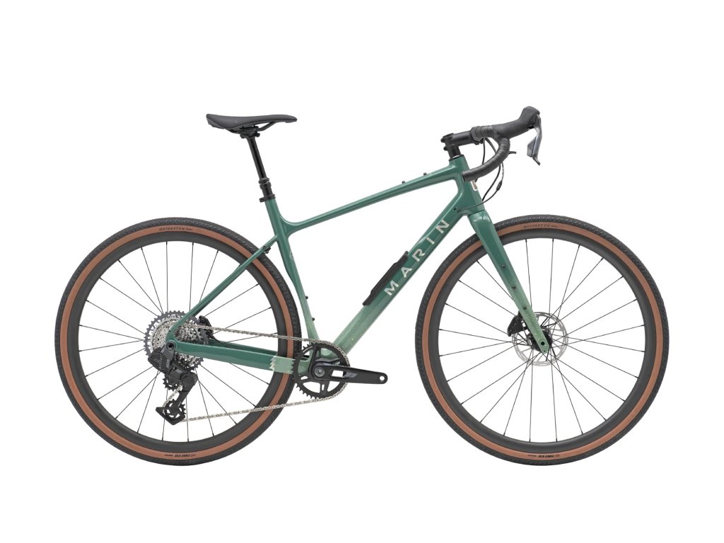 MARIN Headlands 3, zelená, creme de la crème, král třídy - špičková konstrukce pro gravelovou nirvánu. Stejný karbonový rám a vidlice s naším úložným prostorem Bear Box v rámu je nyní doplněn kompletním bezdrátovým řazením 1 x 13 Sram Rival, hydraulickými kotoučovými brzdami Sram Rival, teleskopickou sedlovkou TransX a tuhými, lehkými a efektivními karbonovými koly Novatec G24.