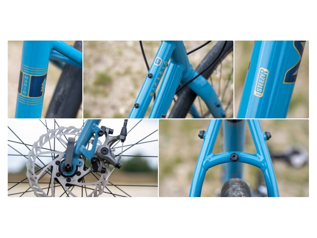 Nicasio 1 ST má step-thru a zároveň stylový rám, vidlici Steezy z CrMo s dvojitým zeslabováním a kola 700C s prostorem pro pneumatiky až do šířky 45 mm.