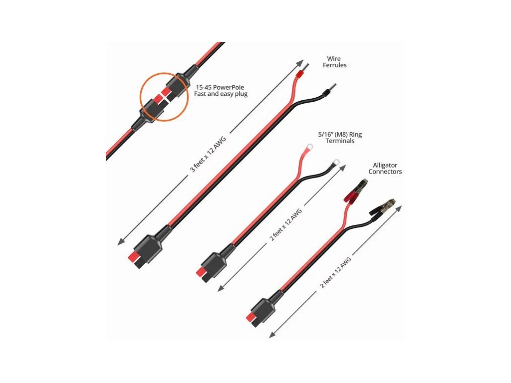 - Kabel délka 3ft. (910mm) x 12 AWG s konektorem Anderson SB50