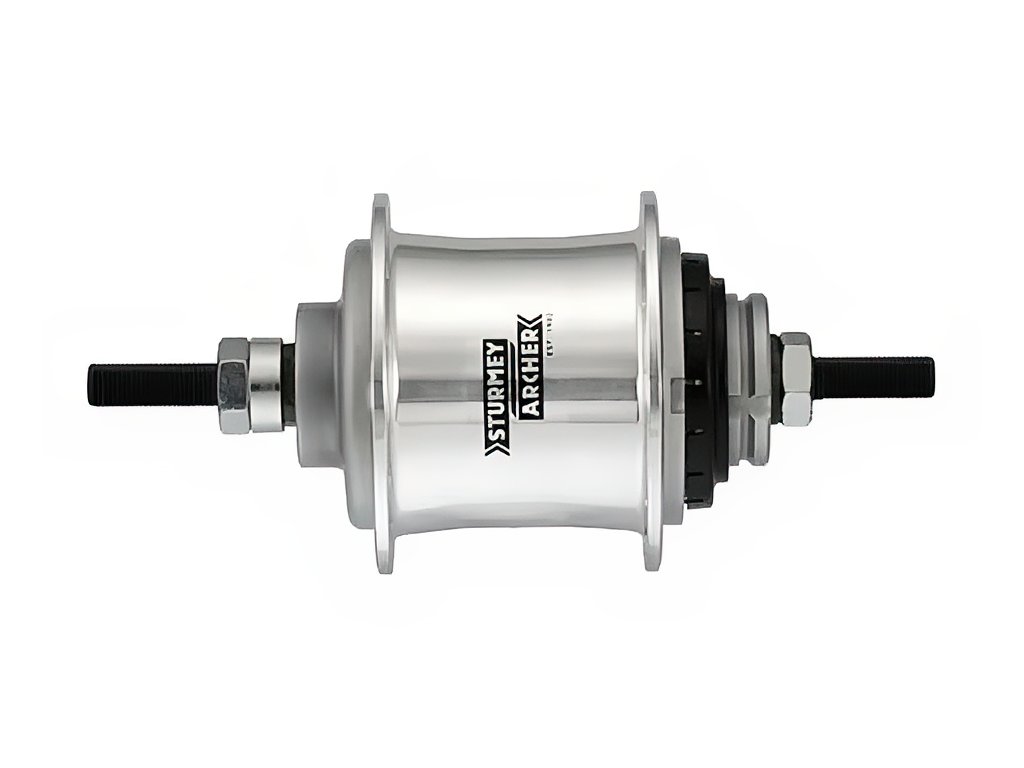 2-rychlostní automatický náboj Sturmey-Archer A2 s rozsahem 137%.