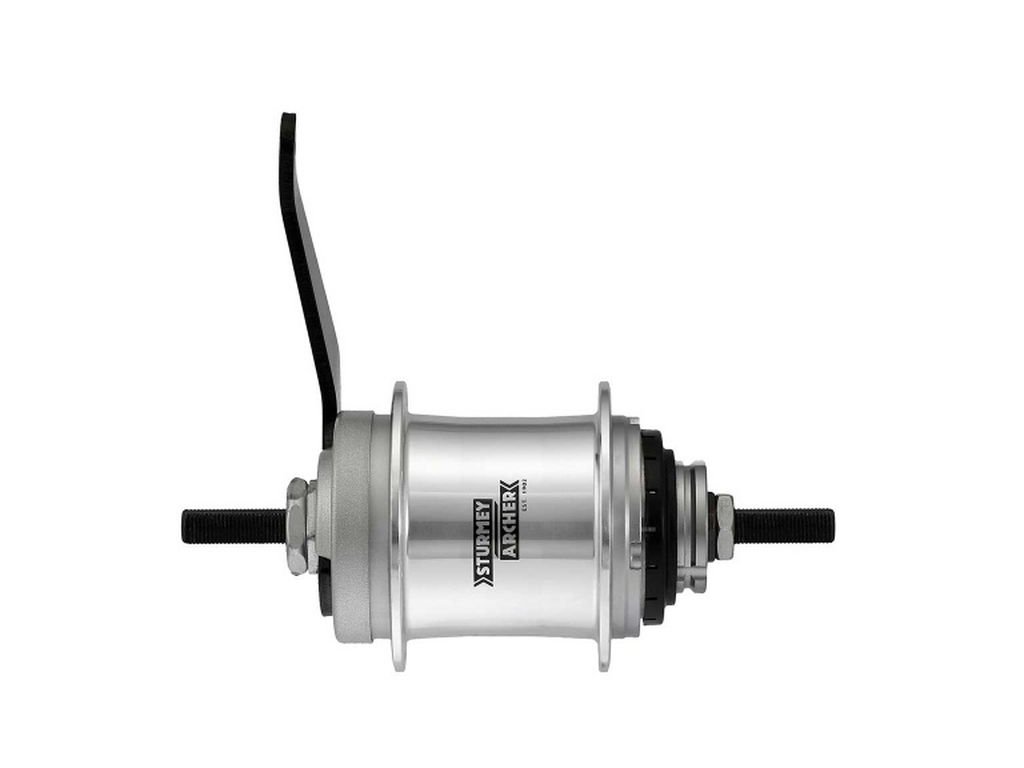 3-rychlostní náboj Sturmey-Archer S-RC3 s rozsahem 177% a protišlapnou brzdou.