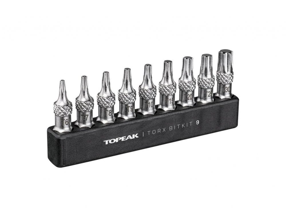 Sada 9 kusů kvalitních bitů Torx pro opravu a údržbu silničních i horských kol. Navrženo pro práci s ráčnami a momentovými klíči. Velkorysá délka bitu 30 mm usnadňuje přístup do těžko dostupných míst a rýhování usnadňuje manipulaci při výměně bitů nebo vyjímání bitů z organizéru.