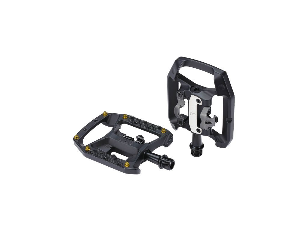 Dvoufunkční pedál. Jedna strana pro SPD kufry a druhá pro klasickou botu.