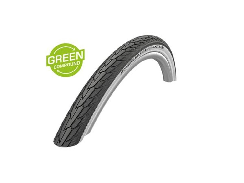 Městský, osobitý a dynamický. Road Cruiser okouzlí svým příjemným designem profilu a mnoha barevnými variantami pro kola od 12” do 28”. Nejvýraznější poznávací znamení Road Cruiseru tkví v běhounu a jmenuje se Green Compound. Guma vyrobená s polymery výlučně z recyklovaných surovin, která je tak dobrá, že jí můžeme poprvé použít pro konvenční cyklistické pláště. Green Compound je výhradně pro černé provedení.