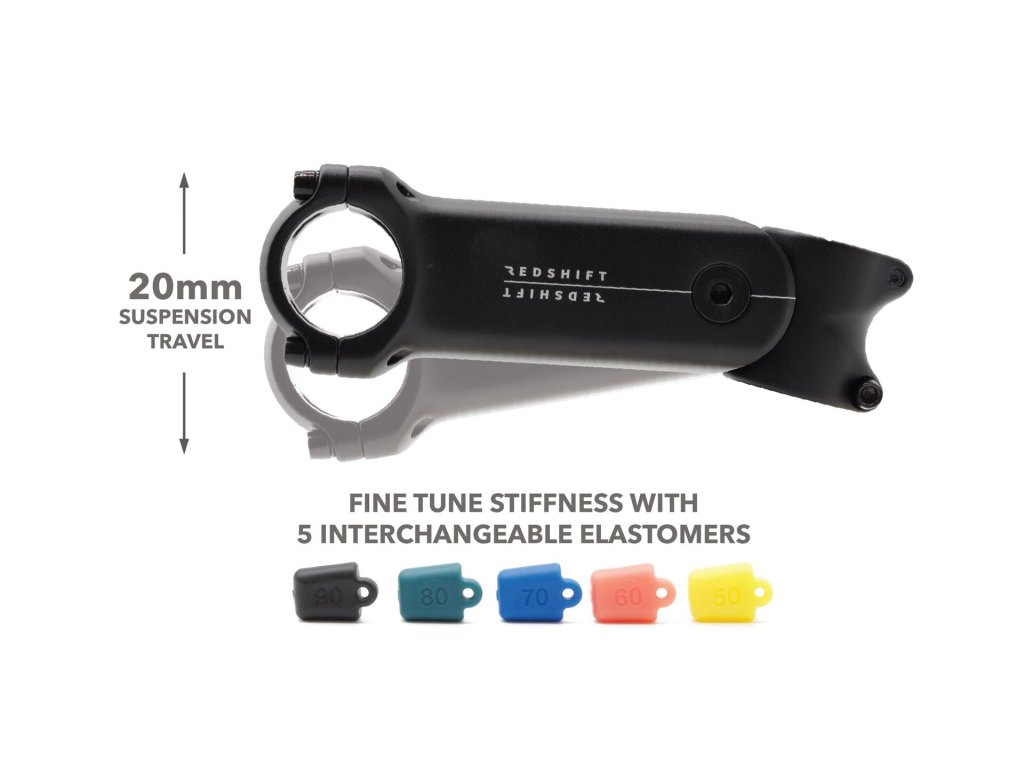 Revoluční odpružený představec Redshift je netradiční způsob jak získat na svém gravelu či fitness kole vyšší komfort. Díky integrovaným elastomerům se dá jednoduše nastavit požadovaná tvrdost. Představec je určený pro zahnutá i rovná řidítka o průměru 31.8 a sloupky vidlic 1 1/8.