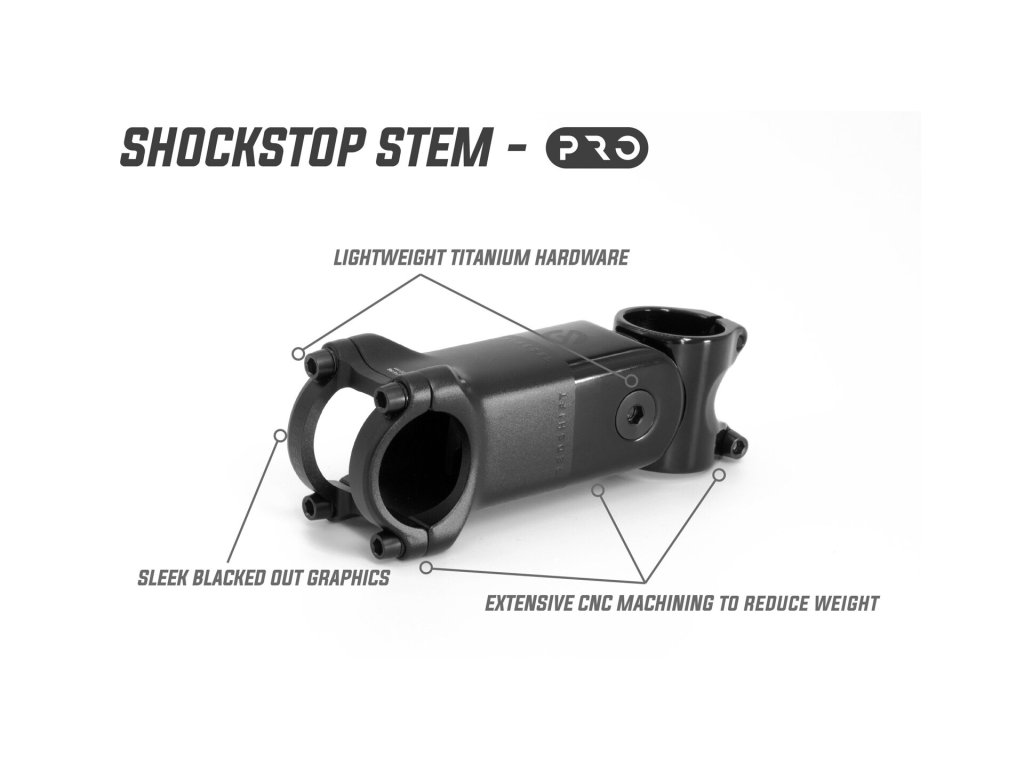 Titanové šrouby a CNC obrábění snižující hmotnost posouvají představec ShockStop PRO Suspension Stem na další úroveň výkonu. Užívejte si stejných výhod tlumení nárazů jako u standardního představce ShockStop s o 15 % nižší hmotností a prvotřídní povrchovou úpravou. Ať už jedete kamkoliv bude vaše jízda plynulejší, rychlejší a pohodlnější.