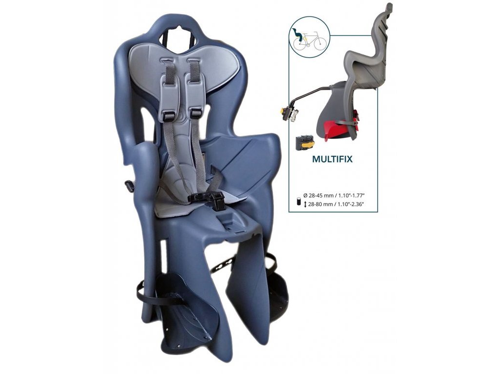 Špičková dětská sedačka s upínáním na zadní část rámu kola pod sedlo, je kvalitní model s velkými větracími otvory a vysokými bočnicemi na držení dětí. Plastový skelet ze zdravotně nezávadného materiálu vyplněný měkkou omyvatelnou vložkou pro pohodlné sezení. Pro zajištění bezpečnosti dětí je v sedačce 3 bodový bezpečnostní pás. Výškově stavitelné podložky pod nohy s pohodlnými upevňovacími přezkami na nohy s jednoduchým ovládáním, možnost nastavení 13 poloh dle výšky dítěte, široké bočnice chránící nohy dítěte před vložením do paprsků kol.