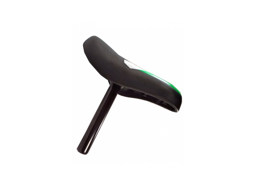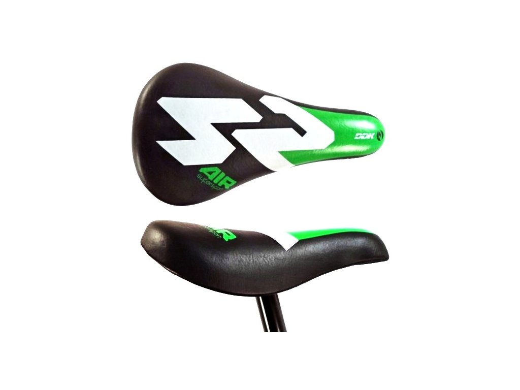 Sedlo DDK dětské se sedlovkou-Rozměr: 235x123mm -Barva -černo-zeleno-bílá -Průměr sedlovky: 22,2mm -Tvrdost - středně tvrdé polstrování s gelem-Hmotnost-297g -Balení - servisní v sáčku