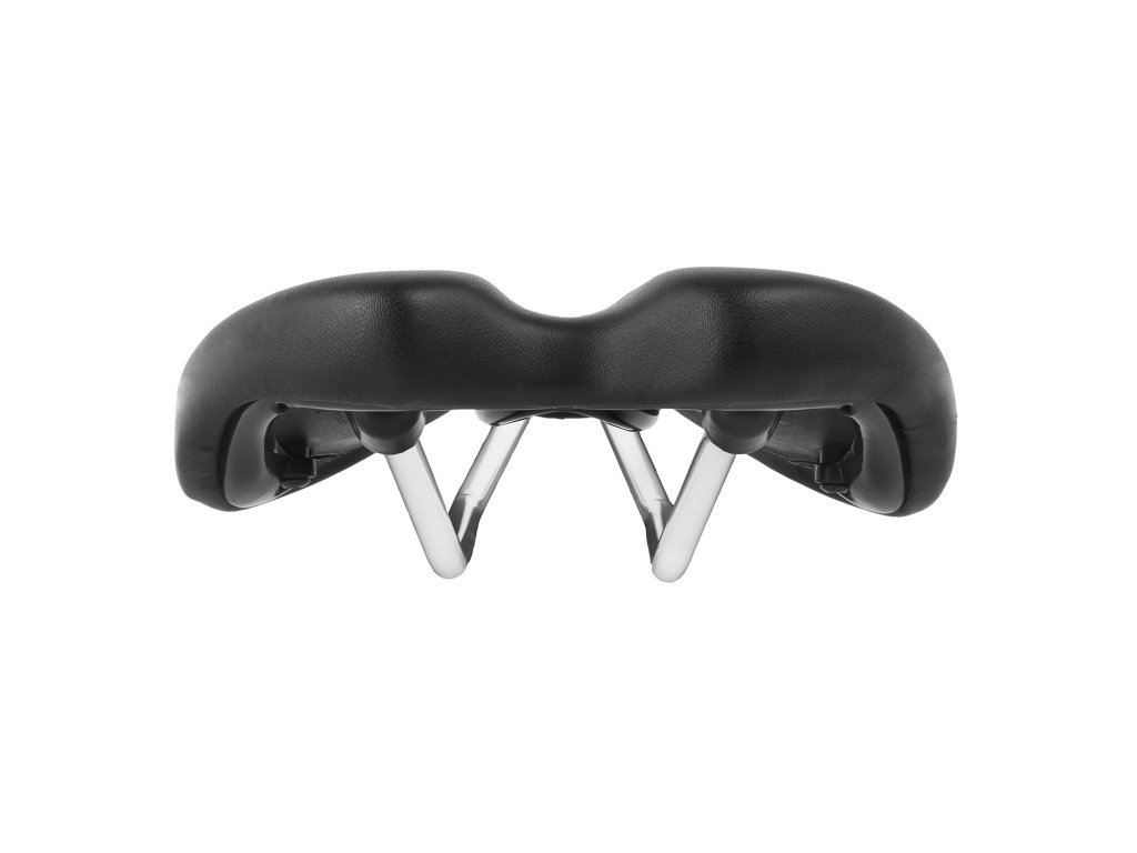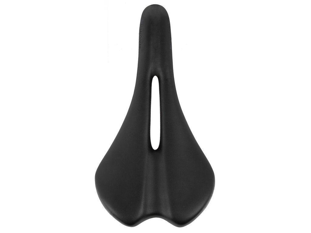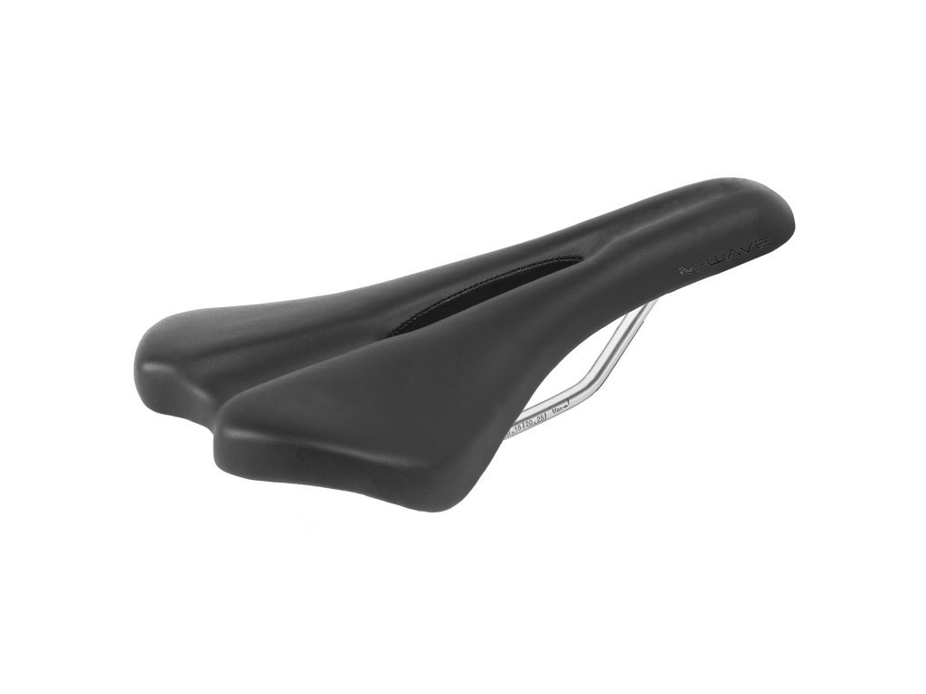 Sedlo M-Wave s otvorem Vzpěry: Fe s měrkami Tvrdost: středně tvrdé polstrování s gelem Barva: černo-bílá Rozměry: 270x140mm Hmotnost: 297g