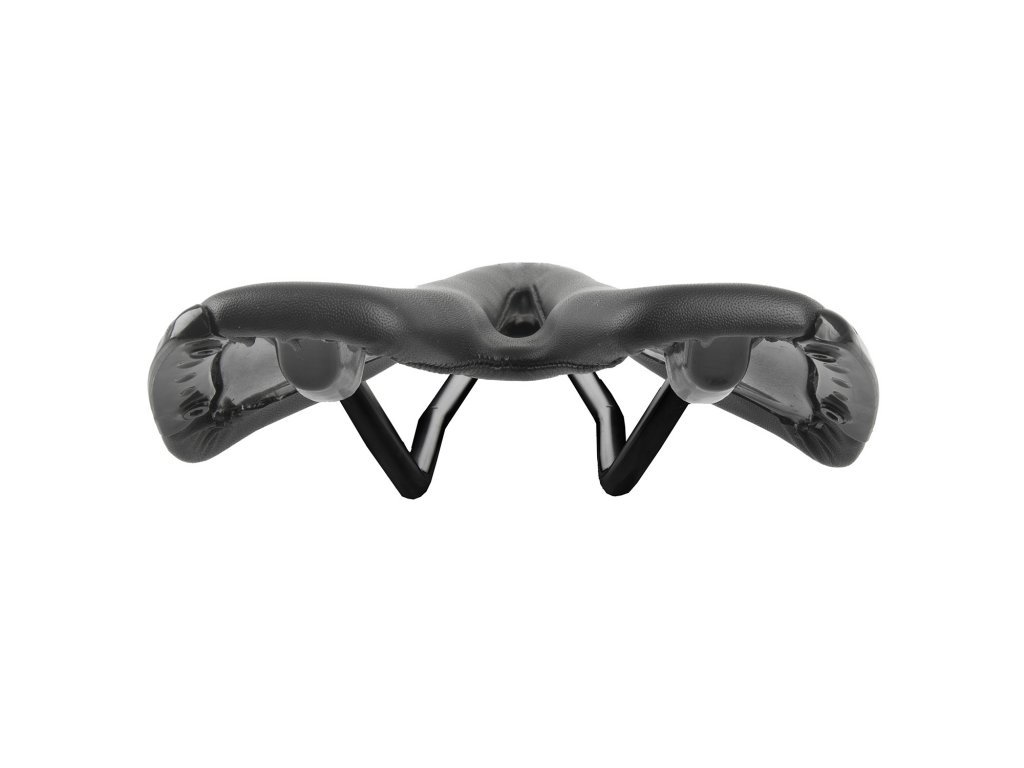 Sedlo M-Wave s otvorem Vzpěry: Fe s měrkami Tvrdost: středně tvrdé polstrování s gelem Barva: černá Rozměry: 280 x 144 mm Hmotnost: 312 g