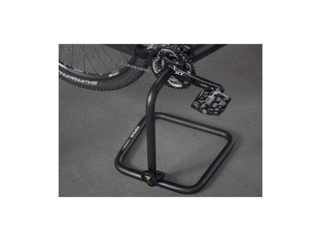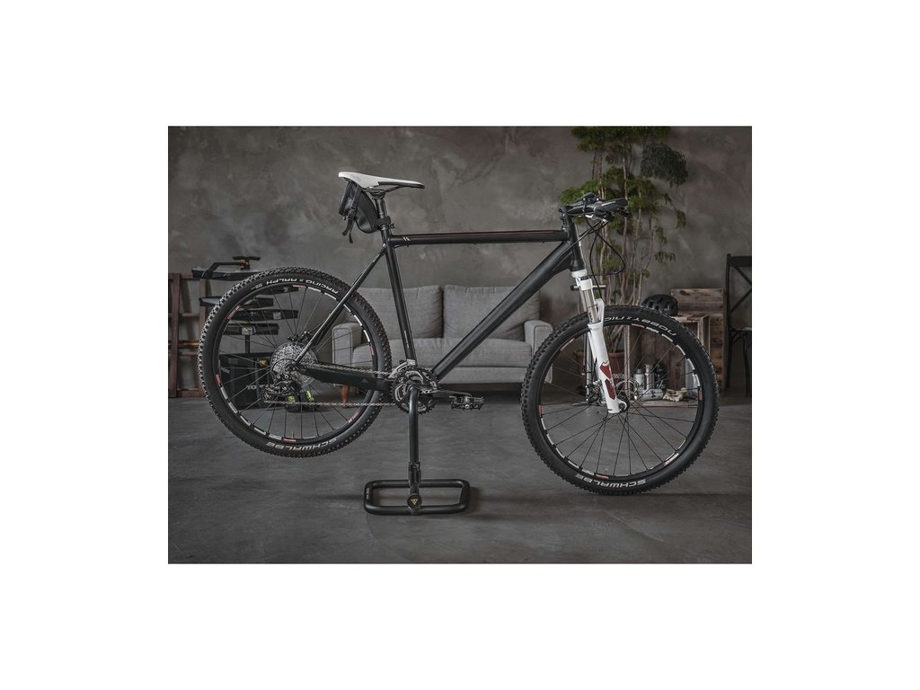 Decentní stojan na kolo s uchycením do duté středové osy. Jednoduché a rychlé nadzvednutí zadního kola pro drobné opravy, čištění nebo vystavení kola.