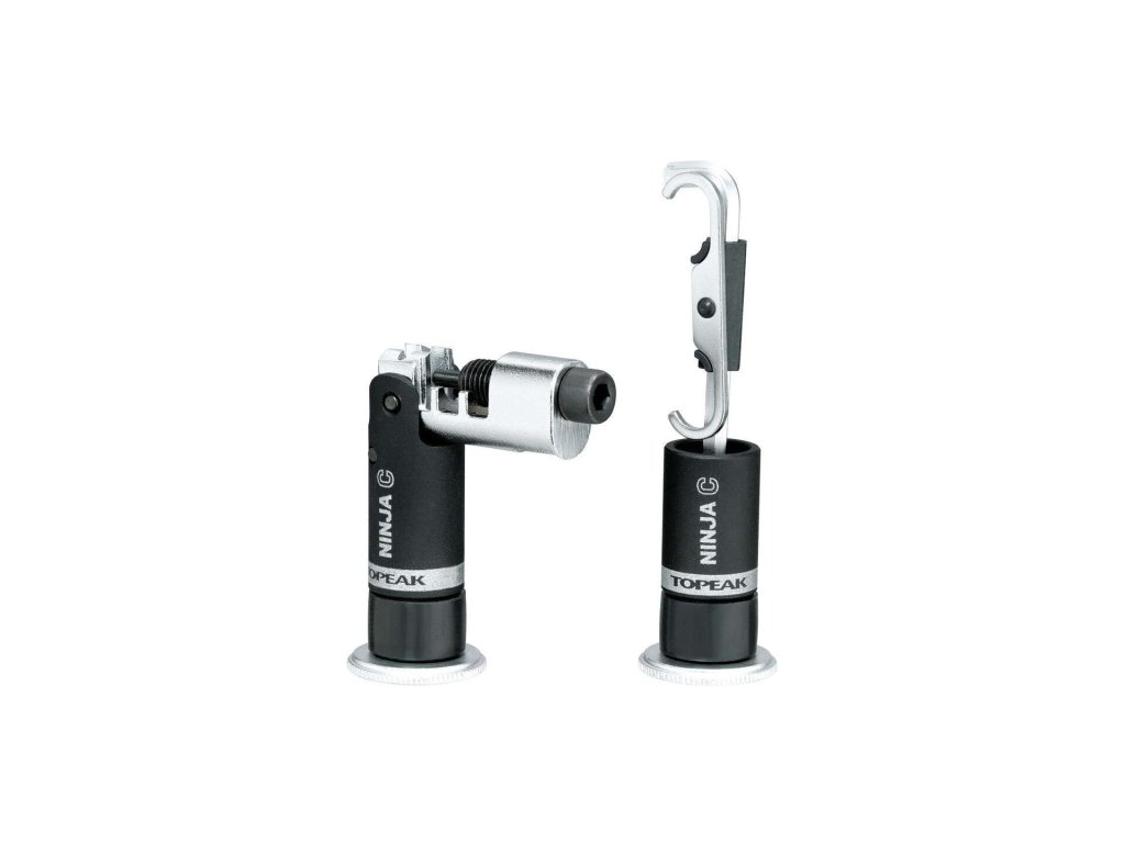 Nýtovačka Ninja C se ukládá do vnitřku řidítek, aby ladné křivky vašeho kola nenarušovalo nic navíc, přesto je nářadí jednoduše dostupné. Nýtovačka je určena až pro 11 rychlostní řetězy včetně pomocného háčku na řetěz.