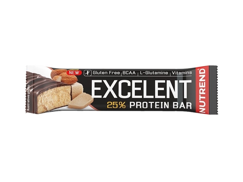 Složení: EXCELENT PROTEIN BAR příchuť - marcipánová s mandlemi v pravé mléčné čokoládě: proteinová směs (sójový proteinový izolát, syrovátkový proteinový koncentrát, sójové vločky), glukózo-fruktózový sirup, mléčná čokoláda 14 % (cukr, kakaové máslo, kakaová hmota, sušené plnotučné mléko, emulgátory sójový lecitin a E 476, vanilkový extrakt), tekutý invertní cukr, rostlinný tuk (palmojádrový, palmový, bambucký), krém s příchutí vanilky (cukr, palmový a bambucký olej, sušená syrovátka, sušené odstředěné mléko, emulgátor sójový lecitin, aroma, barvivo E 160c), mandle 3 %, kokos (kokos, antioxidant oxid siřičitý), rýžový extrudát (rýže, emulgátor E 471), emulgátor řepkový lecitin, L-glutamin, aroma, zahušťovadlo guarová guma, antioxidant směs přírodních tokoferolů, nikotinamid, riboflavin. Může obsahovat stopyořechů, arašídů a sezamu.