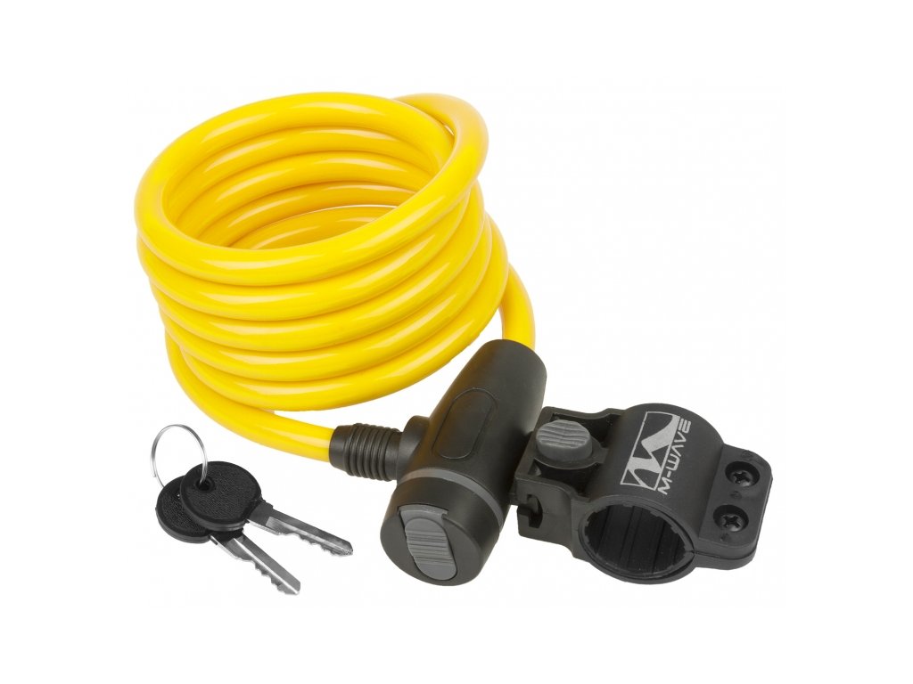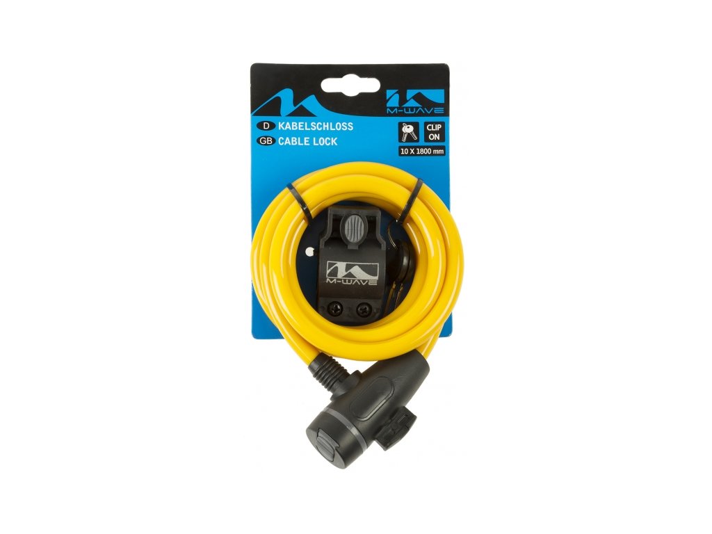Průměr lanka: 10 mm Délka řetězu: 1800 mmDržák k uchycení na sedlovku nebo k rámuOchranný kryt Barva: žlutá transparentní Balení obsahuje 2 klíče Balení: karta M-Wave