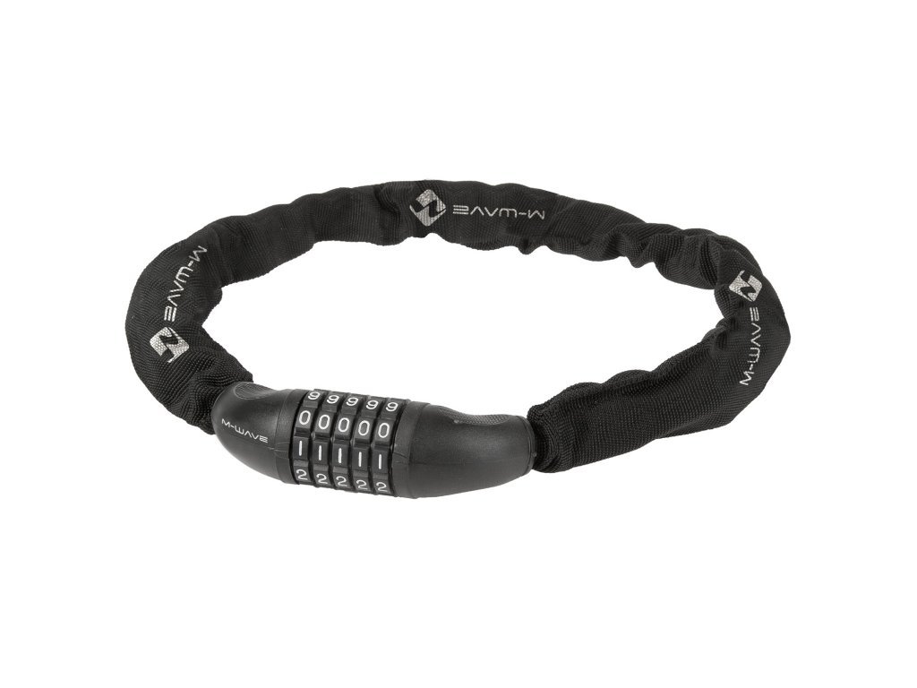 Průměr řetězu: 6 mm Délka řetězu: 850 mmUzamykání pomocí nastavitelného bezpečnostního kóduTextilní potah s logem M-WaveBarva: černá Balení: karta M-Wave