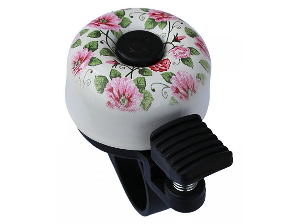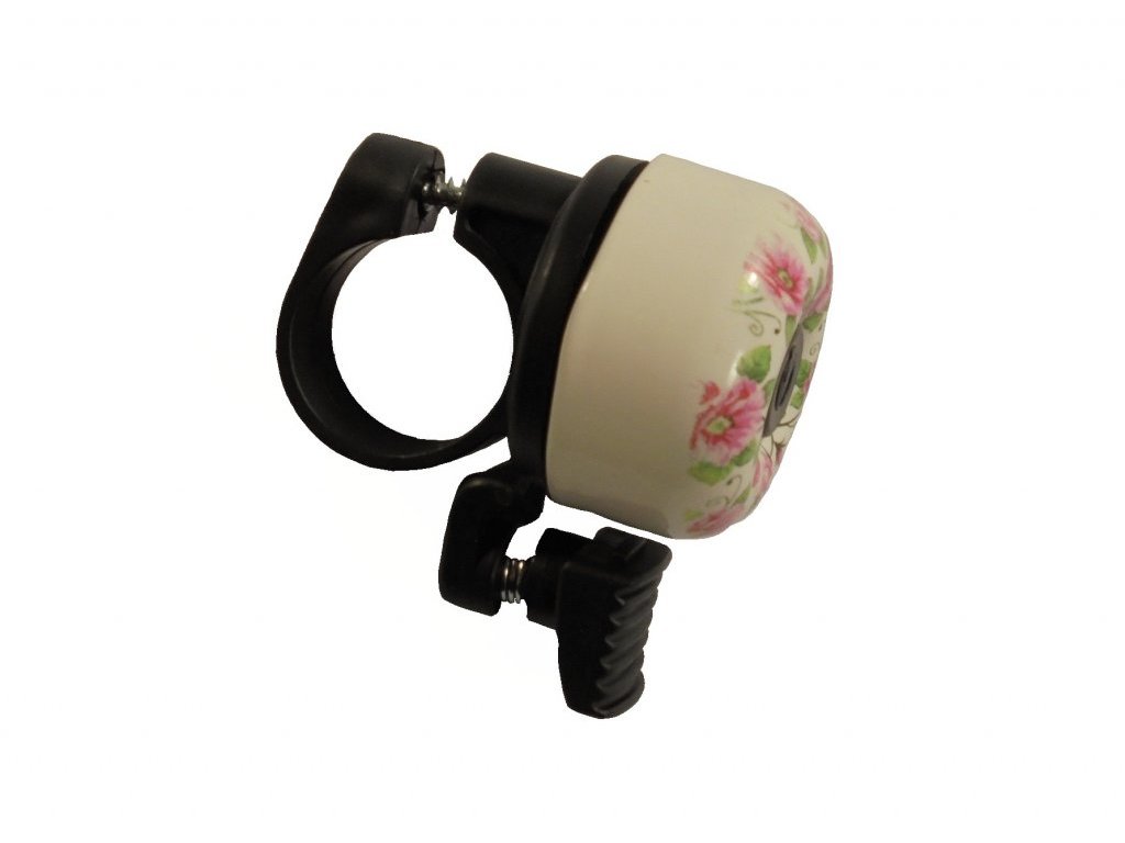 Paličkový klinkací zvonek VelobelPrůměr: 35 mmVzor: květinyMateriál: hliník + plastHmotnost: 21 gObjímka: 22,2 mmNebaleno.