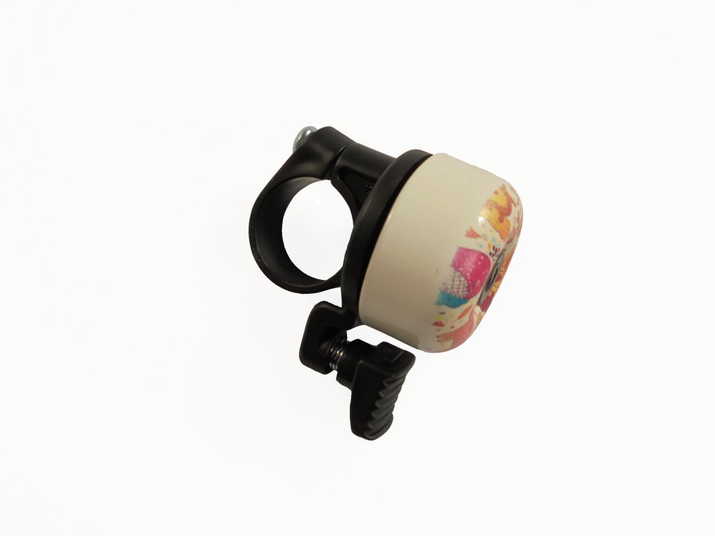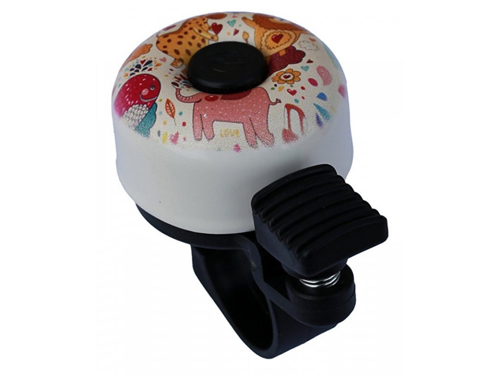 Paličkový klinkací zvonek VelobelPrůměr: 35 mmVzor: zvířátkaMateriál: hliník + plastHmotnost: 21 gObjímka: 22,2 mmNebaleno.
