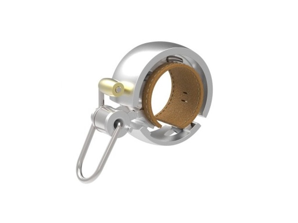 Celokovový zvonek Knog Oi LUXE, s koženou vložkou.